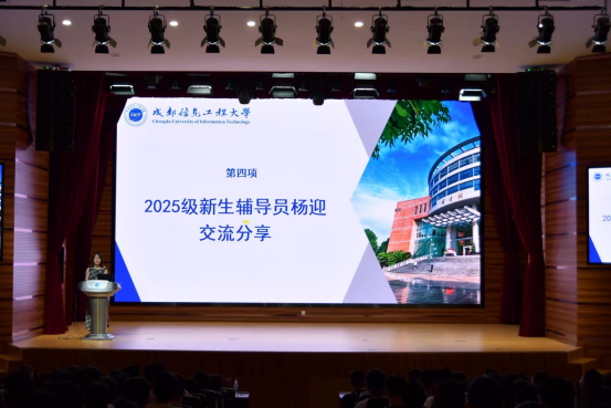 杨迎以轻松亲切的方式,为新生介绍了校园学习生活实用信息和成都文化特色,鼓励大家主动交流、积极融入yl8cc永利官网大家庭。